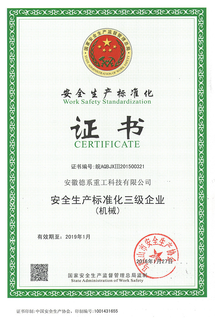 安全生產(chǎn)標準化證書