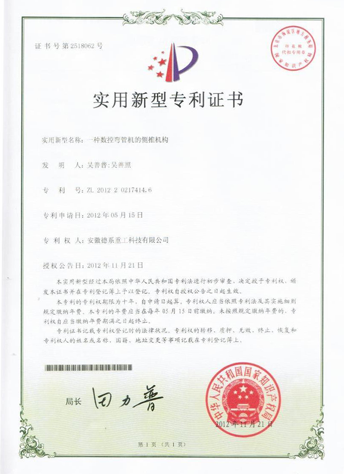 數(shù)控彎管機(jī)用側(cè)推機(jī)構(gòu)