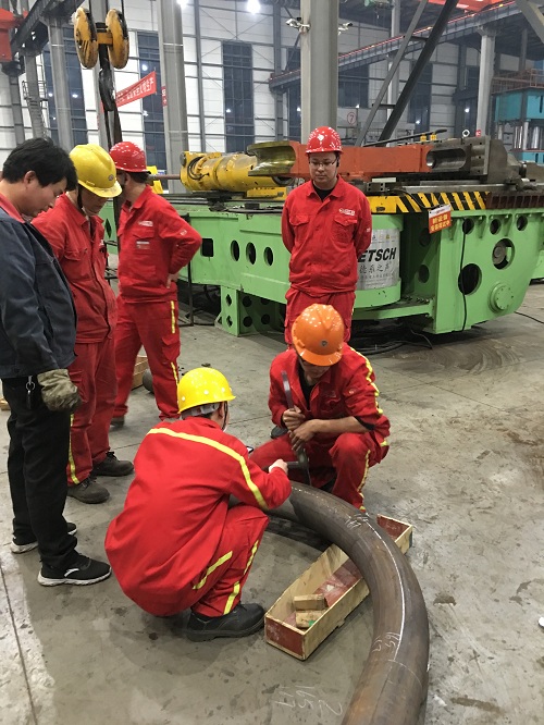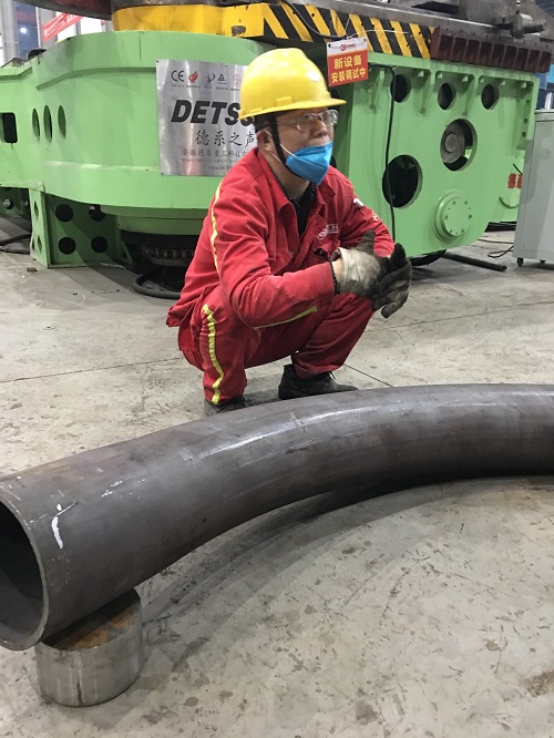 3、彎曲結(jié)束時,主模(a)旋轉(zhuǎn)停止時的角度就是所需要的彎曲角度。使用多球芯軸(f)和防皺模(g)保證管子(或型材)的橢圓度和內(nèi)壁不起皺。