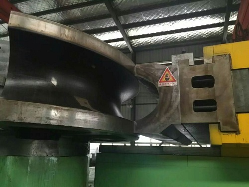 1、將管子(或型材)抱緊在頂鐓機(jī)構(gòu)(d)半圓槽(型腔)內(nèi)實(shí)現(xiàn)頂鐓工藝。2、為了避免管子(或型材)在彎制≥180度是可能產(chǎn)生的干涉,必須與壓料道軌模(c)動(dòng)作高度一致。 |