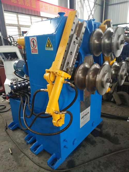 06.機(jī)床兩側(cè)有液壓托輥(180機(jī)型以上為特殊附件,需另訂購(gòu)),可防非對(duì)稱型材在卷彎過(guò)程中所產(chǎn)生的扭曲變形,有利于保證非對(duì)稱截面型材卷彎質(zhì)量。同時(shí)也具有控制螺旋形型材之螺距。