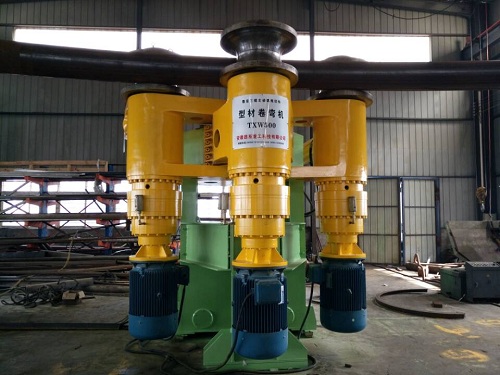 1. 三個(gè)工作輥均為主動(dòng)輥,有三個(gè)獨(dú)立的伺服電機(jī)和三個(gè)精密行星減速機(jī)直接驅(qū)動(dòng),效率高,傳動(dòng)平穩(wěn)。 2. 無馬達(dá)漏油或液壓閥芯堵塞卡死現(xiàn)象。 3. 彎曲工作平穩(wěn)高效,特別是小半徑和螺旋彎曲時(shí)三輥同時(shí)給力,無打滑現(xiàn)象。 4. 三輥?zhàn)冾l無極調(diào)速,可根據(jù)實(shí)際彎曲要求(如模具直徑差較大),分別調(diào)節(jié)三個(gè)主動(dòng)輥轉(zhuǎn)速。 |