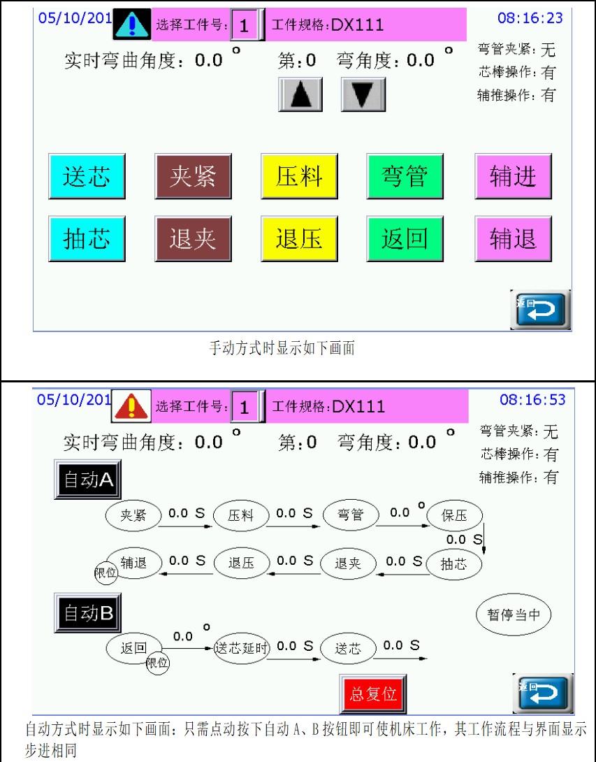 ● 小型設(shè)備可一次完成夾緊、壓料、送芯、彎管(輔推進)、抽芯、松開、退壓、復(fù)位,整個工藝流程。