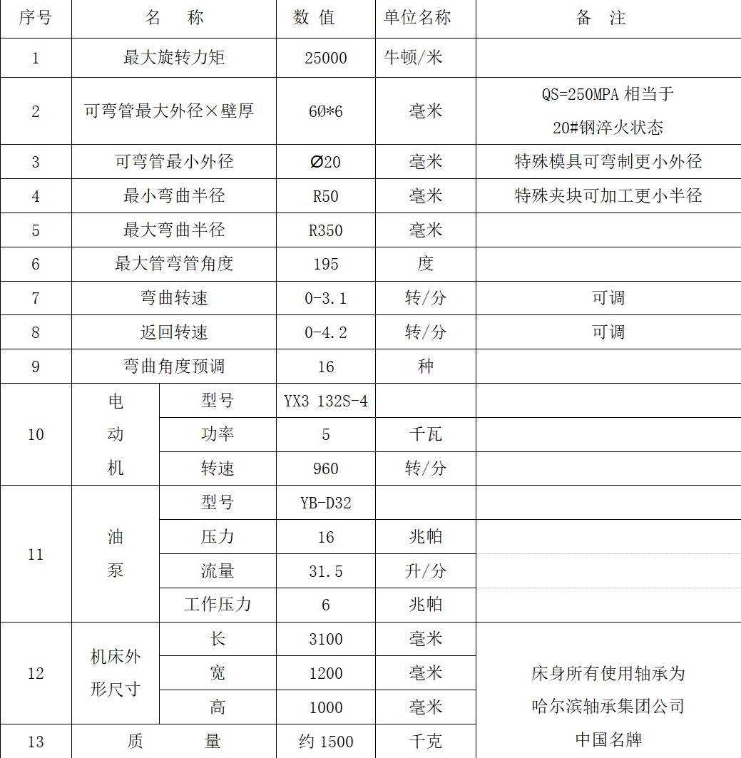 ● 全液壓驅(qū)動:液壓夾緊,液壓壓料,液壓彎管(可增配液壓輔推),液壓抽芯,五只油缸。