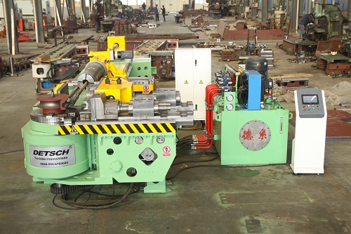 3、彎曲結(jié)束時(shí),主模(a)旋轉(zhuǎn)停止時(shí)的角度就是所需要的彎曲角度。使用多球芯軸(f)和防皺模(g)保證管子(或型材)的橢圓度和內(nèi)壁不起皺。