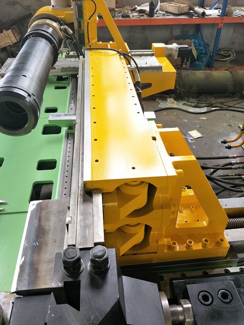 彎曲時夾緊管子(或型材)與a、c結(jié)合實現(xiàn)纏繞式拉拔工藝。 |
